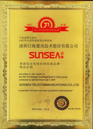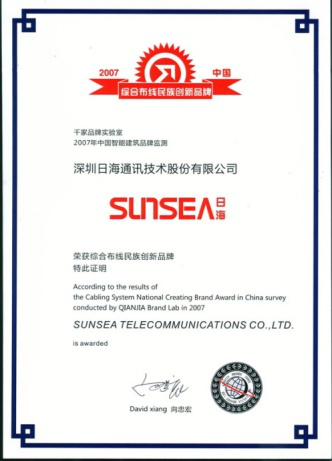 2007年11月29日~30日,ballbet贝博·(中国)公司智能综合布线受邀前往上海光大会展中心酒店,参加由千家网筹办的“2007年第八届中国国际建筑智能化峰会暨颁奖典礼”,获得了“布线民族创新品牌”特别奖项。