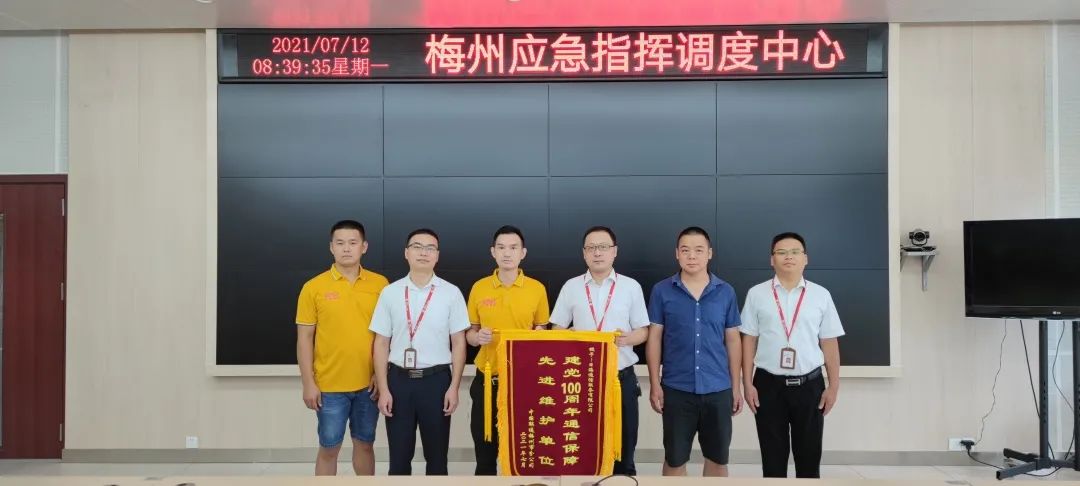 活动当天,各传输枢纽值守、干线盯防、仪表、车辆、应急物资全部到位,除落实安全人员24小时值班机制外,公司还部署实施了态势感知、应急响应、持续安全评估、安全监测巡检等措施,实现重保期间网络安全零事故。为此,ballbet贝博·(中国)公司通服被中国联通梅州市分公司授予“建党100周年通信保障先进维护单位”的荣誉锦旗。